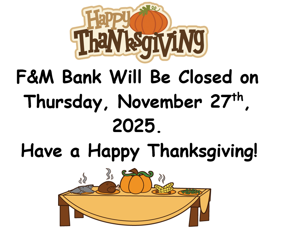 You are leaving F&M Bank and Trust's website and linking to a third party site. Please be advised that you will then link to a website hosted by another party, where you will no longer be subject to, or under the protection of, the privacy and security policies of F&M Bank and Trust. We recommend that you review and evaluate the privacy and security policies of the site that you are entering. F&M Bank and Trust assumes no liability for the content, information, security, policies or transactions provided by these other sites.